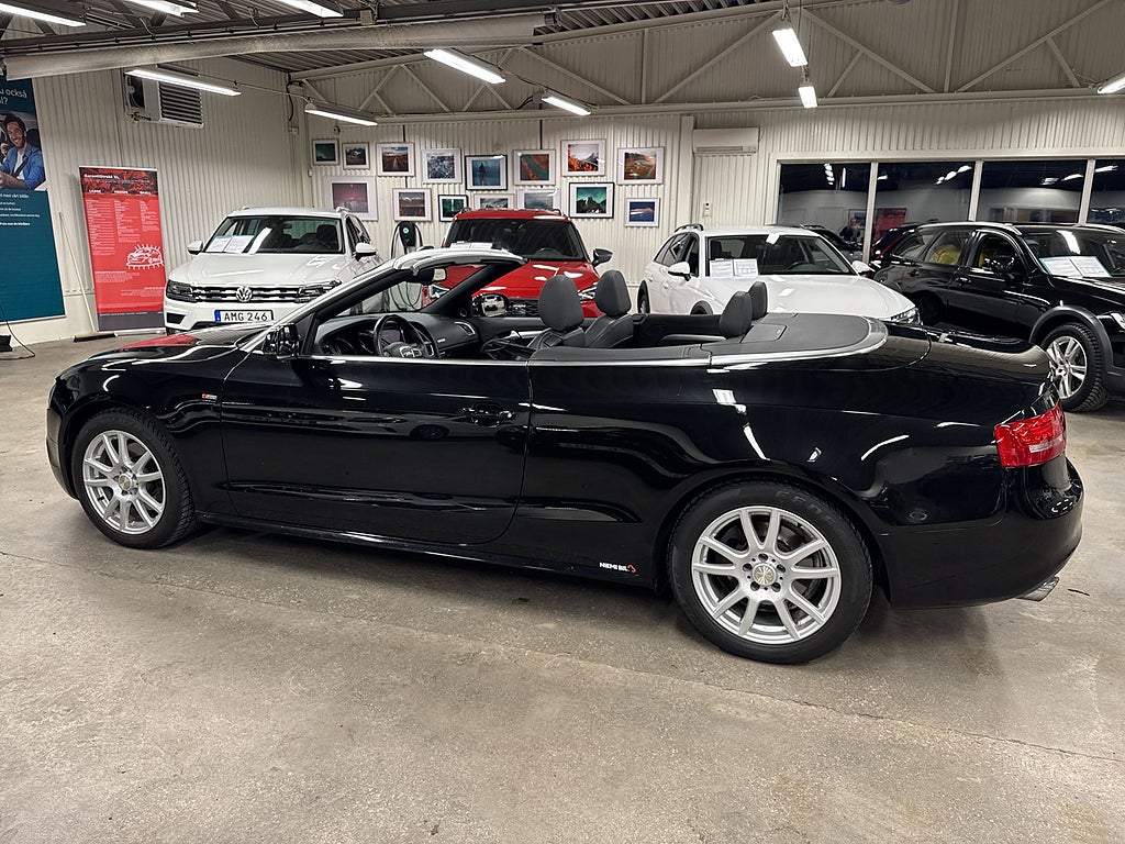 In i lager kommer en snygg Audi A5 Cabriolet 2.0 TFSI quattro S Tronic med 211 hk från 2010 med S Line & Comfort-paket.